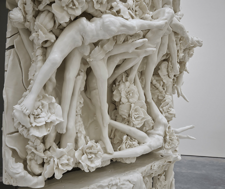 Kneebone’s sculptures do not depict the full human form, but allude to the body through the use of a mass of legs appearing to be in motion, often shown in relation to organic forms such as flowers and orbs. Clay, and its more refined form of porcelain, have been used for thousands of years to make objects for the home and for display. Rachel Kneebone has developed her own unique form of sculpture, working primarily in porcelain to create highly complex and delicate objects.