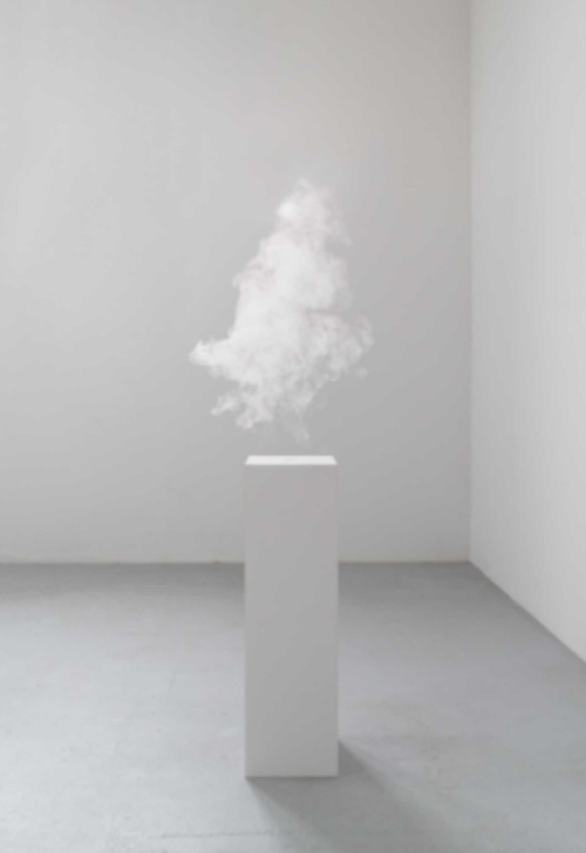 Bild: Lyoudmila Milanova / Steffi Lindner, The Sky Eludes All Attempts At Planning, 2017, kinetic sculpture (fog machine, fog fluid, electronics, motor, wooden base), 120 x 35 x 35 cm, Foto: © Lyoudmila Milanova / Steffi Lindner