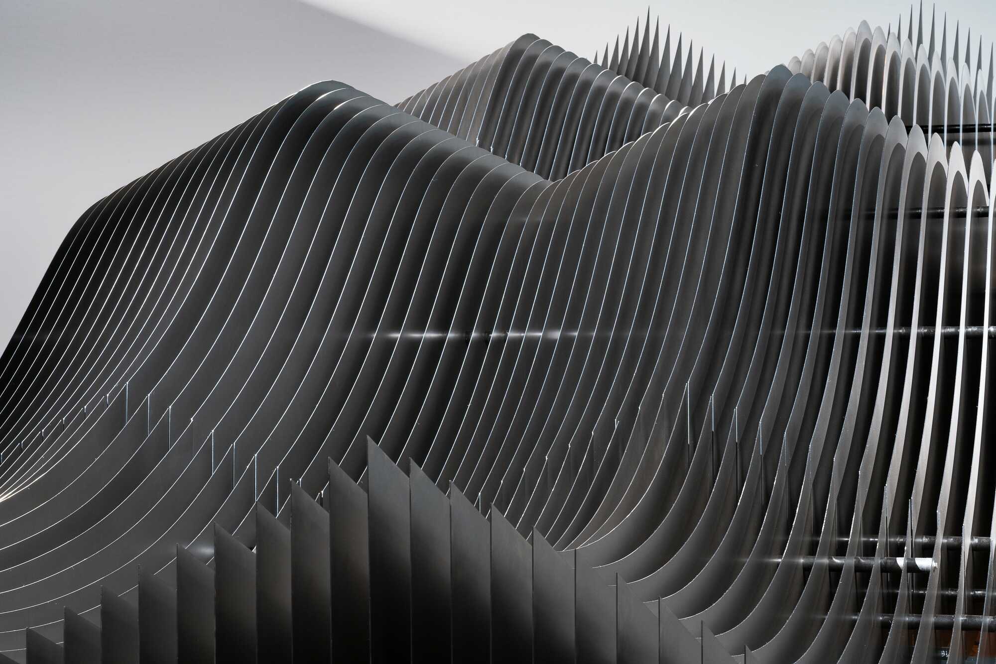Bild: Đào Châu Hải, Installationsansicht, 12. Berlin Biennale, Akademie der Künste, Hanseatenweg, 11.6.–18.9.2022, Foto: dotgain.info, Đào Châu Hải, Ballad of the East Sea [Die Ballade vom Ostchinesischen Meer] (Detail), 2022, CNC-gefräste Stahlplatten