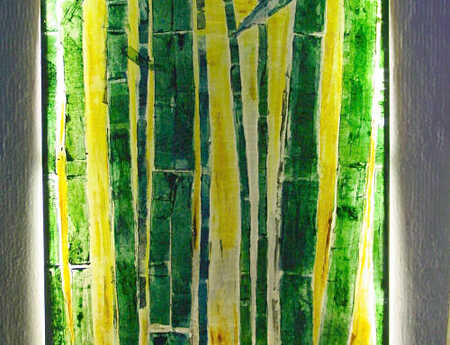 "GrĂŒn im Gelb", Lichtobjekt Textil, Papiere