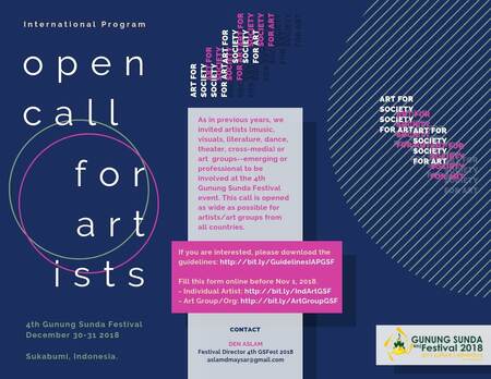 The 4th Gunung Sunda Festival is an annual event consisting of several arts and cultural programs, such as art exhibitions, theater performances, dance, music, poetry, visual arts, and cross-media art. In addition, artists/art groups can organize workshops, presentations of work, and talks.