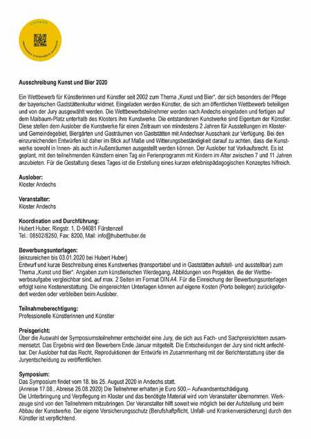 Für mehr Informationen bitte Ausschreibungsunterlagen herunterladen oder besuchen Sie die Website: https://www.kunstundbier.de/ausschreibung-2020/