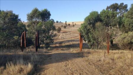 Gregâs place is 3.5 km north of the township on the eastern side of Davenport Road. The locale is known as Rathjen Hill which peaks at a few hundred metres. The 163 hectare (403 acre) property is hilly to undulating with a spectacular rock escarpment and three small creek lines, part of the Reedy Creek Catchment which flows to the River Murray. There is scattered remnant vegetation, the main species being the Rock Grass Tree (Xanthorrhorea quadrangulata), Drooping Sheoak (Allocasuarina verticillata), Golden Wattle (Acacia pycnantha) and River Redgum (Eucalyptus camaldulensis) and numerous native grasses and bulbs.