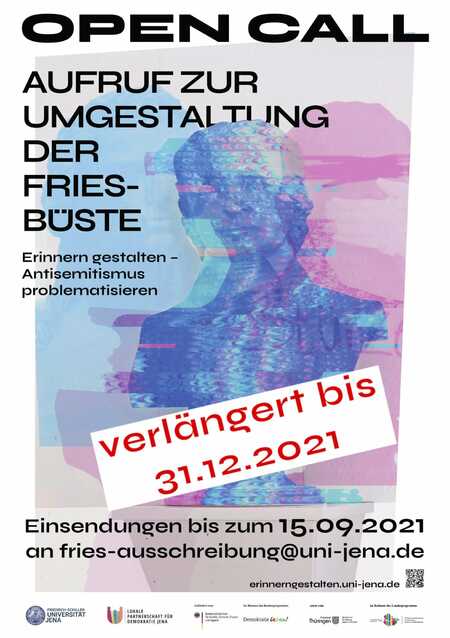 Im Hörsaal Z1 des Philosophischen Instituts der Friedrich-Schiller-Universität Jena ist seit dem 25.10.2000 die Büste des Jenaer Philosophen Jakob Friedrich Fries (1773-1843) zu sehen. Die Büste aber ist kontrovers: denn mit Fries wird ein Philosoph geehrt, der antijüdische und antisemitische Schriften und Polemiken veröffentlichte. Im vergangenen Jahr fand ein der Frage „Wie umgehen mit umstrittenen Büsten und Denkmälern?“ gewidmetes Universitätsseminar statt, welches den ‚Fall Fries‘ – dessen philosophisches Werk und politisches Wirken im Lichte des Antisemitismusvorwurfs – erforschte und die Ergebnisse auf der Website erinnerngestalten.uni-jena.de digital der Öffentlichkeit zugänglich machte. Teil des Projekts ist die Auseinandersetzung mit Formen des praktischen Umgangs bzw. der ästhetischen Umgestaltung der Büste, die aktuell und bis auf Weiteres verhüllt ist.