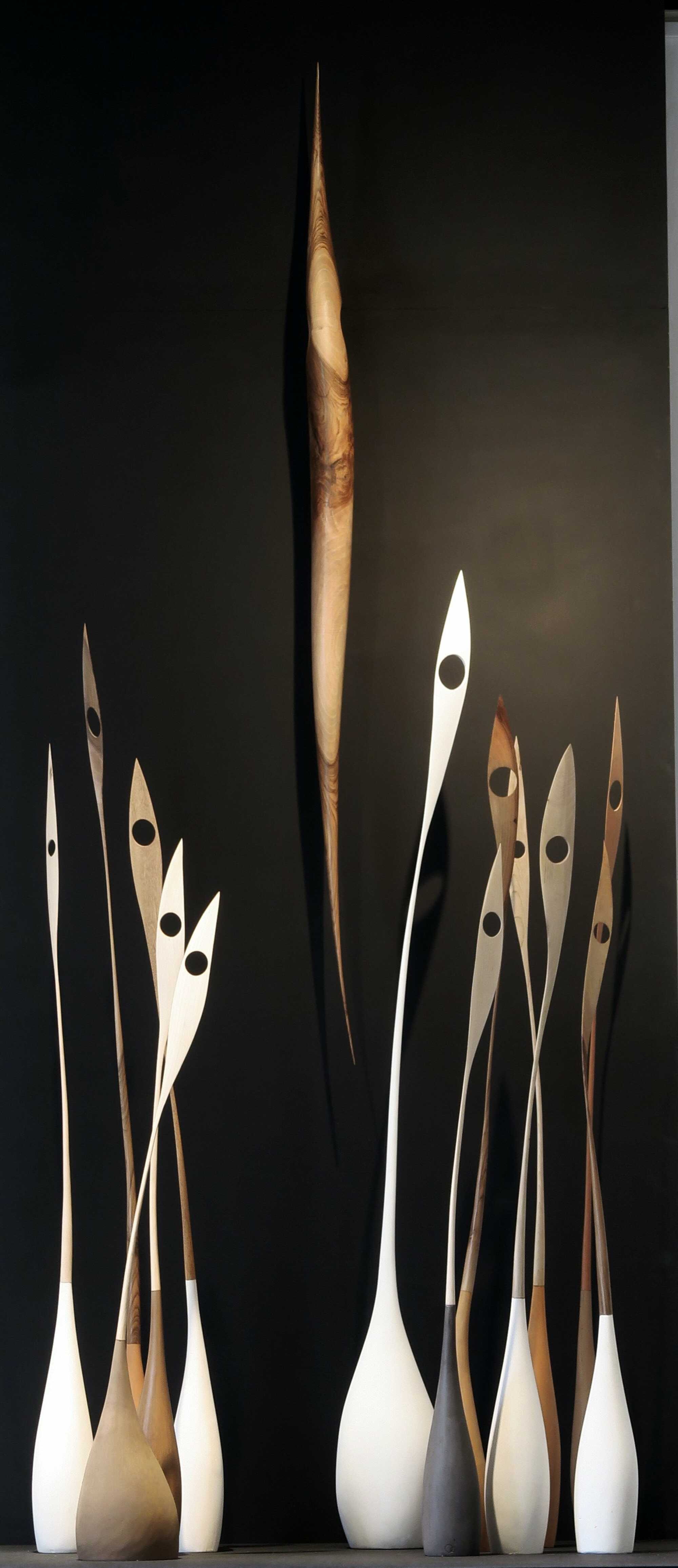 PR: Ich arbeite gerne mit Holz von einheimischen Olivenbäumen. Aber jede Holzart hat ihren eigenen Charakter. Verschiedene Formen erfordern verschiedene Hölzer, deshalb arbeite ich auch mit burmesischem Teak, Eiche und Ipe, einem südamerikanischen Baum. Ich suche immer nach dem am besten geeigneten Holz für eine bestimmte Form. Manchmal verändert die Struktur des Holzes die ursprüngliche Idee zu etwas Neuem.