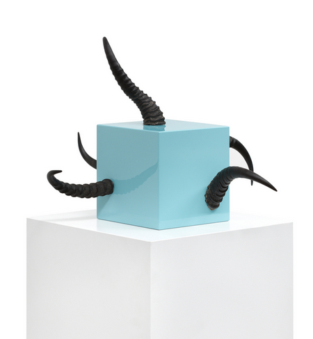 At first glance, the bright blue figure "Blue Sky" by artist and sculpture network member Peter Riss looks friendly and decorative. But this impression is deceptive: the closer one looks, the more threatening and alienating it becomes. This is because the surface of the cube is broken by black ibex-horns winding in different directions. Despite or perhaps because of the danger that the sculpture radiates at second glance, Peter Riss was successful at the "YICCA 2017 - International Contest of Contemporary Art" competition and thus became the only German in the final exhibition of the competition in the museum Fondazione Crocetti in Rome, which took place from 18 to 29 November 2017.