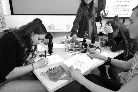In addition, the four students drew the Munich residents' favourite art locations directly on paper. Thus, works of art were immediately created on site from the written art site.