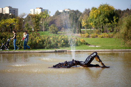 There are few works co-created by Paweł Althamer himself. Sylwia (2010)—a cast bronze sculpture of chimera placed in the water reservoir—is a fruit of collaboration between Althamer and his long-time associates: the Nowolipie Group. Since 1995, the artist has been doing pottery workshops with people suffering from multiple sclerosis, for whom art was a form of therapy and rehabilitation. For the park, they together created a fountain in the form of a snake-haired woman lying on the water.