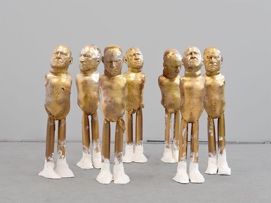 And that is what Marty tries to portray in his installation. The mere presence of these idols in a cultural temple announces their downfall. It voids them of any ideological meaning and though they stand high atop pedestals as if in their own chapels, they are somehow ridiculed, converted into tragicomic objects that suggest the collapse and futility of philosophies and great ideals.