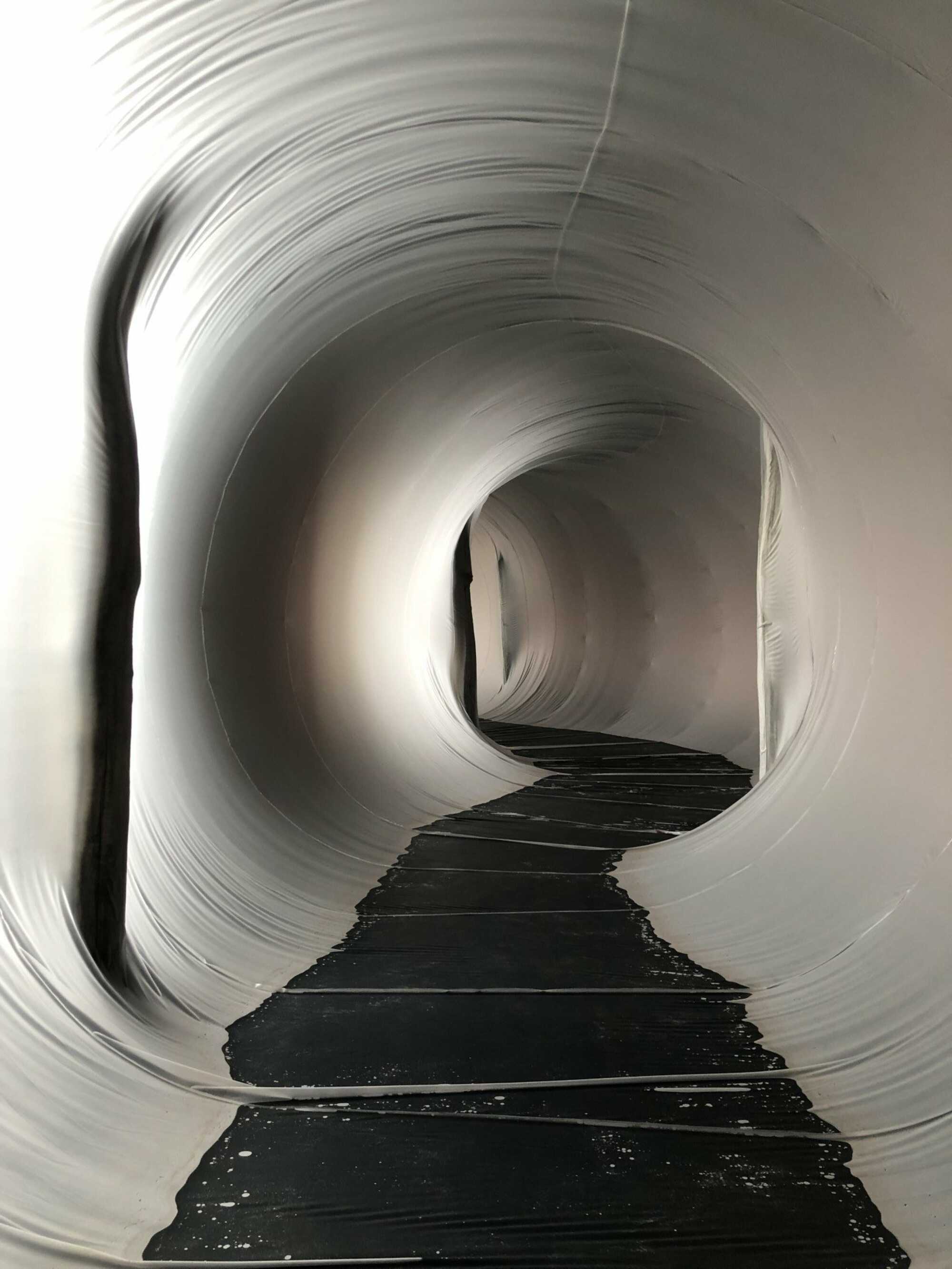 L’installazione è composta a più mani: il tunnel è stata realizzato dal collettivo Plastique Fantastique, che si definisce “una piattaforma creativa di installazioni temporanee”. Gli elementi in marmo che puntellano e dialogano con il tunnel sono opera di Fabio Viale.