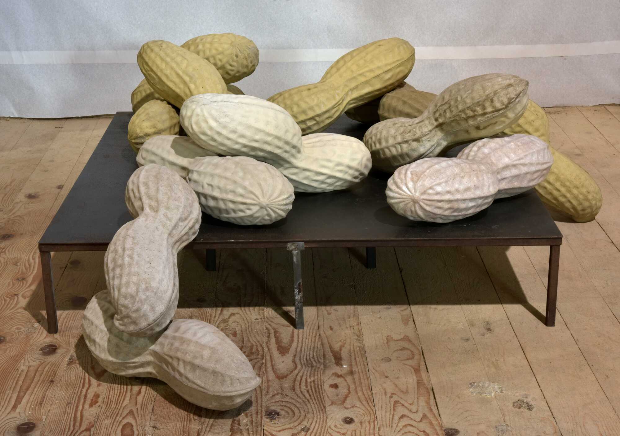 Eva Oertli, „Erdnüsse“, 2019, multiples, concrete and pigments, 54 cm, Photo: Ruedi Kuchen