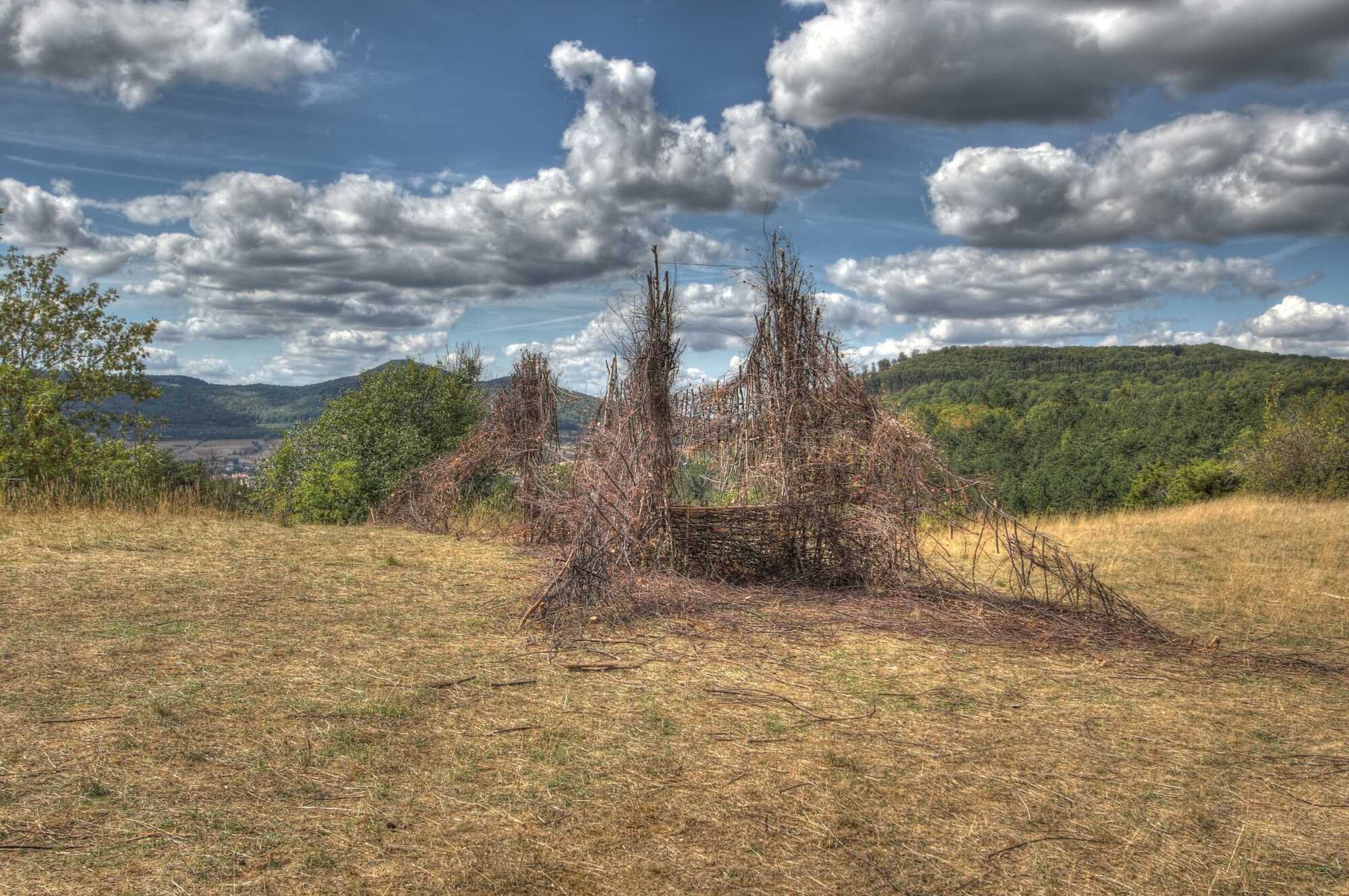 The jury awarded a total of four prizes: the first prize went to the Russian artist Aleksei Dmitriev, with his installation of branches and twigs, which he assembled on site to create an impressive sculpture. The second prize was shared by Irena Paskali from Macedonia with her video "2202m", in which she dealt with freedom, boundaries and the global refugee debate, as well as the Swiss artist Heinz Schmid with his work "...Wolken ĂĽber..." (Clouds over...), whose mobile wire cloud formations attached to a rope at lofty heights continually allowed the view of the landscape to be perceived anew. The artist Adriano Cangemi from Argentina, who was awarded the special prize for his performance "NAGUAL - Moved by the wind" on August 28th at the Katzenstein, received a special award.