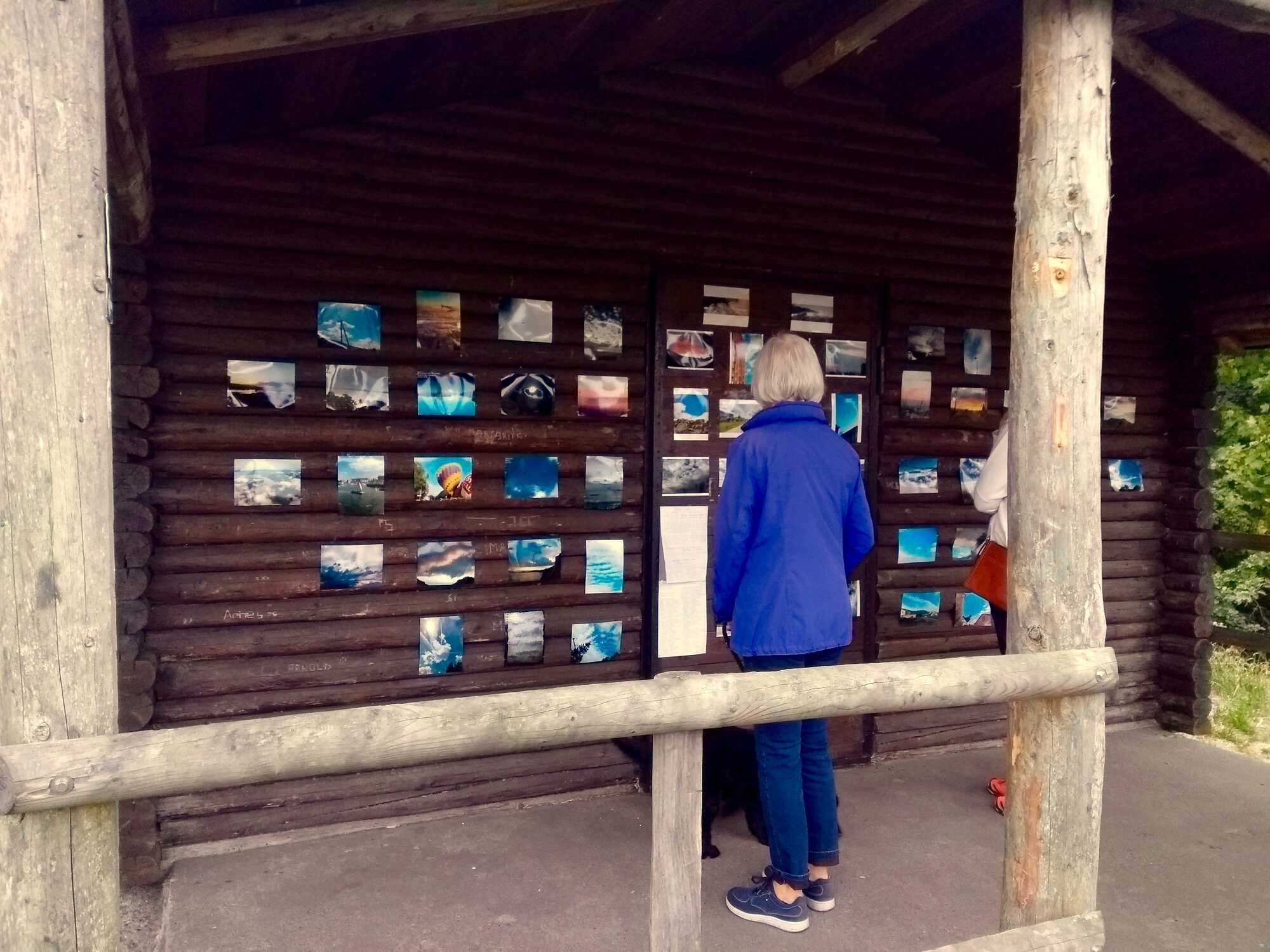Anne and Michael Rolfka exhibited "Ice Clouds" and "Global Clouds". For "Global Clouds" they asked artists from all over the world to send pictures of clouds and arranged the photos in the form of a cloud on the wall of a cabin.