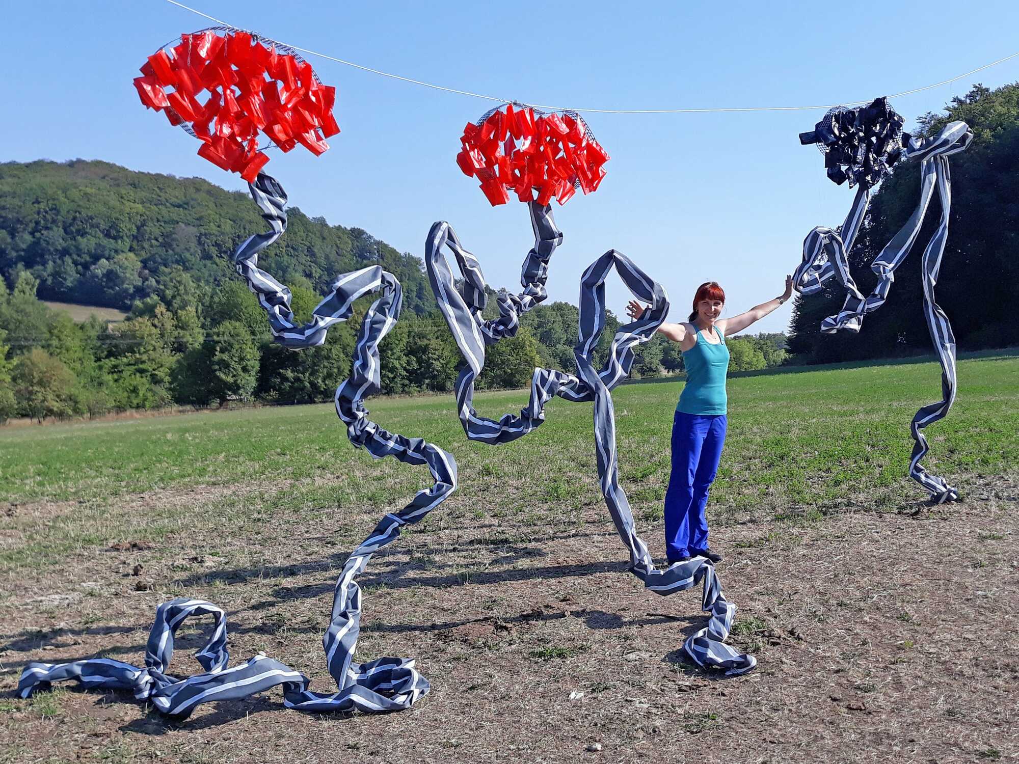 On September 2, 2018 we visited the award ceremony of the 9th edition of the international wind art festival "bewegter wind" which has been held every two years in Northern Hesse since 2004. This year’s festival motto was "Clouds" and 64 artists from 21 countries delighted the visitors to the exhibition sites around the Katzenstein in the community of Habichtswald, along theAlpine Path in the Dörnberg nature reserve, at the Helfensteinen and at the Hohen Dörnberg with their very different approaches to the theme. Among these artists were 6 members of sculpture network, who were invited by the curator Reta Reinl to exhibit their work.