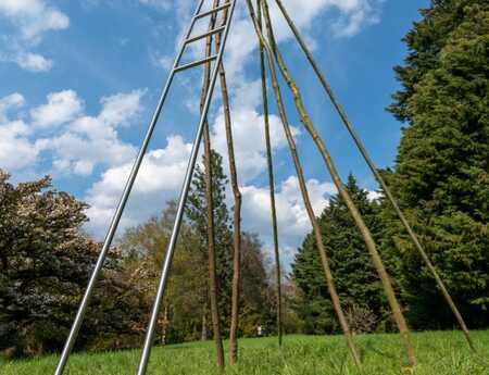 Die von ihm selbst angefertigten Plastiken aus Stahl, manchmal auch Holz und anderen Materialien, stehen für sich, sie sind eigenständige Gebilde und folgen in ihrer geometrischen Klarheit immer einer konkreten, formalen Zielsetzung. Die Diskrepanz zwischen Erwartung und Erfüllung, die eine Skulptur/Plastik auslösen kann, ist Teil des bildhauerischen Konzeptes von Andreas Sagmeister.