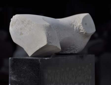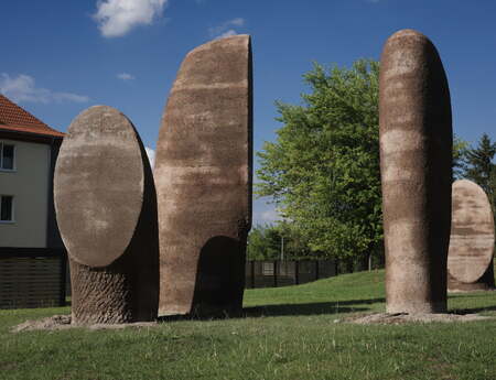 Erscheinung und Präsenz ohne Gestisches, Erzählerisches, Versinnbildlichendes, ist immer wieder Ziel bei eigenen Formerprobungen und Arbeiten in Stein. In den Unterschieden zwischen einer bruchrauen, polierten oder einer durch Werkzeuge strukturierten Oberfläche, spüren wir welcher Stoff welche Form authentisch verkörpern kann. Der Stein wird nicht Mensch, nicht Tier, nicht Fleisch, er bleibt Stein.