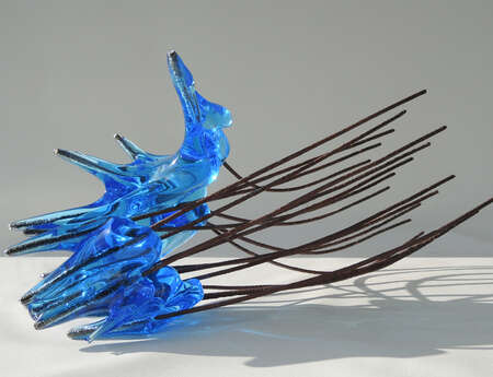 Die Werke sind Ergebnisse einer Neugier auf das Verhalten der Materialien in ihrem Miteinander und Gegeneinander. Besonders spannend und darum in letzter Zeit favorisiert ist das ofengeformte Glas. Ich finde es fast ausschließlich im Abfall-Container einer Glaserei und auf Flohmärkten.Die Tatsache, dass sich Glas im Brennofen nur bedingt vorhersehbar verhält, bringt den Zufall ins Spiel, der für mich eine unverzichtbare Komponente ist. Darüber hinaus ermöglicht das bizarre Verhalten des Glases eine gestalterische Vielfalt, deren Möglichkeiten immer wieder überrascht. Zum Beispiel ermöglicht es Störungen wie Sprünge, Verformungen und Verunreinigungen. Diese auf bestimmte Weise mit Harmonischem und Schönem in einen Dialog gesetzt kann das Polare, Vielfältige und Widersprüchliche, das allem Sein zugrunde liegt, zum Ausdruck bringen.