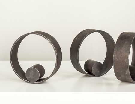 Jürgen Heinz works with steel. With his MOVING SCULPTURES, the artist transcends the insurmountable gap between archaic, heavy steel and gentle movement. The objects conceal their mobility in a closed form, which is first perceived as static plastic. A light impulse, a touch, or a breath of wind brings the sculpture to swing and awakens its vitality. The MOVING SCULPTURES by Jürgen Heinz communicate with the viewer, touch, pull in pell and call for action. „The soul of the object is revealed through movement.“ - says Jürgen Heinz.
