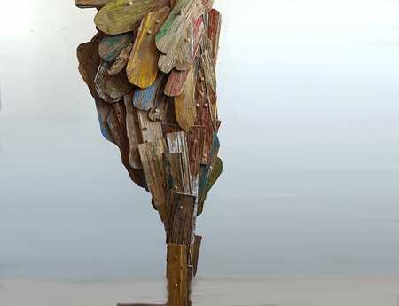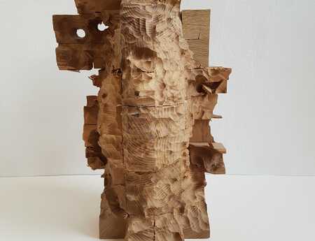 De beelden die ik maak raken afwisselend abstractie en figuratief,echter bijna altijd is de gemeenschappelijke noemer hout. Ik stapel mechanisch gevormd hout die ik zodanig bewerk dat er een dialoog ontstaat met organisch gebeeldhouwde vormen .Zo ontstaan houtsculpturen die een dialoog zoeken tussen natuurlijke groeiwijzen en door de mens ontwikkelde vormen. Vergangkelijkheid ,de cycli in de natuur en de aantasting ervan zijn mijn inspiratiebronnen. My sculptures are inspired by nature.The wood sculpturesthat Icreate in this way seek to establish a dialogue between natural ways of growing and forms developed by man.The "transcience"of all things is,thus,also emphasized.and human interventions are reduced to a component within an existential process.A mechanism with a melancholic undertone witch ennobles itself..A confrontation,due to the use of nature on the one hand,and the violation of nature on the other.The origin,not only wood,but also of the spiritual value of all tha inspires us,is thus emphasized.