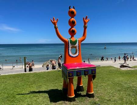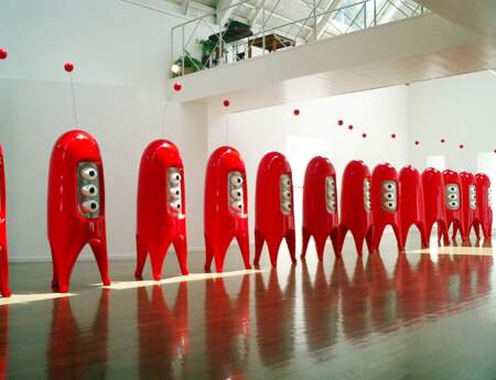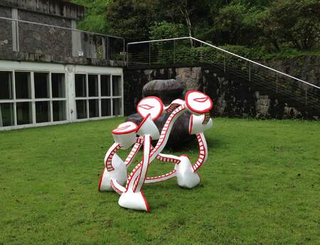 Savako specializes in sculptures made of fiberglass from clay models, and then painted. Her sculptures are characterized by their colorful and playful forms, which look like ancient civilizations, but with a contemporary pop.