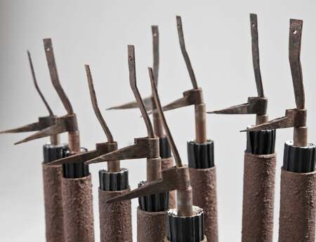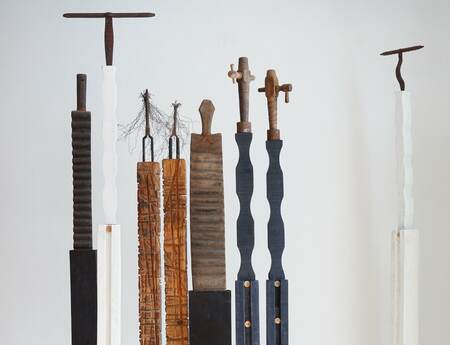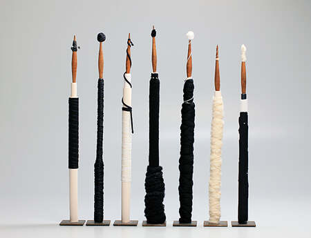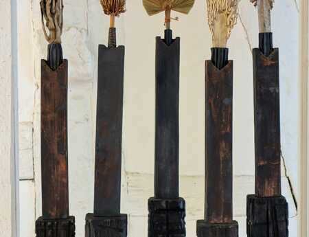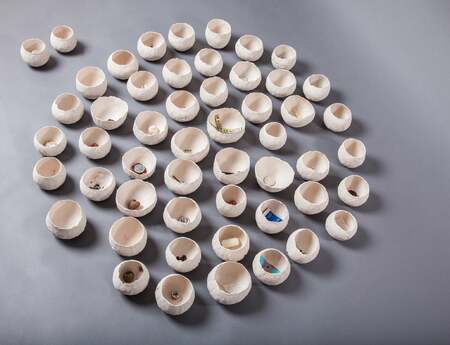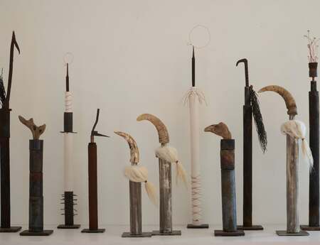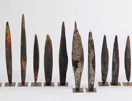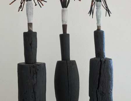 Bei den Skulpturen ist das Suchen, Finden, Sammeln, Kombinieren und Transformieren von alten Gebrauchsgegenständen oder Dingen, die Spuren der Zeit aufweisen, die Geschichten erzählen können , ein wichtiges Element. Oft kombiniert sie diese Dinge mit Holz oder Ton. Die Keramik brennt sie meist draußen in ihrem Garten in Rakutechnik, einer aus Japan kommenden alten Brenntechnik, bei der die Elemente Erde, Feuer, Wasser, Luft ins Spiel kommen und das Ergebnis entscheidend mit beeinflussen.
