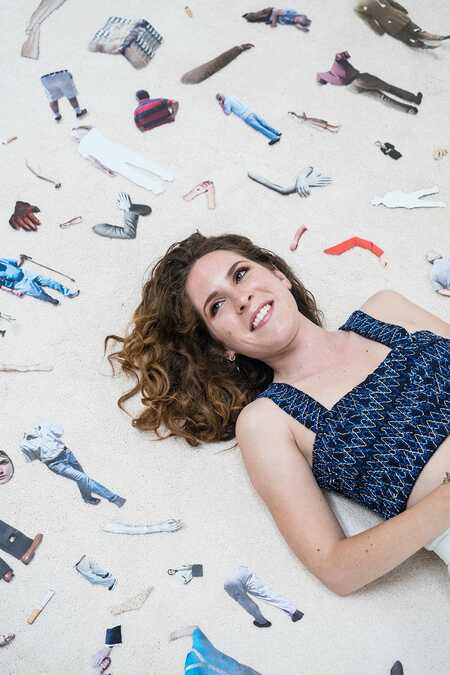 She usually cuts out her pictures (or found-footages) and uses those pieces as sculptural elements that - enlarged or printed on different materials - create a different perception of the space. Her favored subjects are often human beings or their belongings that - displaced from their original background - are staged in the exhibition space and create a surreal dimension where new stories are possible.