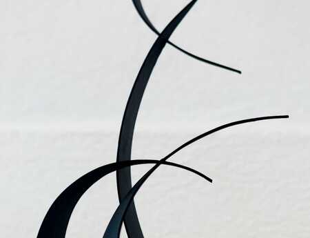 Tension as a balance between concepts is present in all aspects of the work. The use of steel as a material exposes a weight, a solidity. The facto f curving ans stylizing its formas provides a condition of lightness. It is this relationship between elements that interests me. From a language far from representation, I look for a siÌntesis in the meanings. That expression and contentment shake hands.