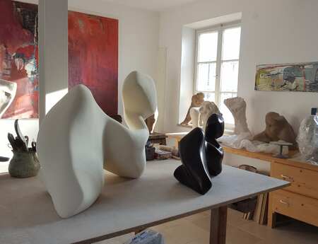 Der Intuition freien Lauf lassen oder bei Auftrag den Ort und das Thema verinnerlichen. Aufbau, Form und dann der Guss für die Ewigkeit.
