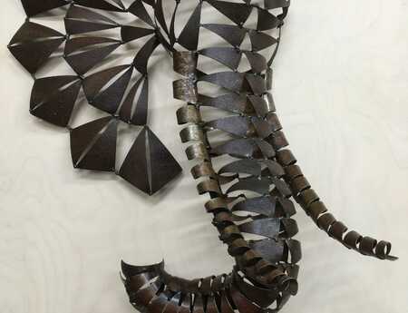 2006 hat sich die Hauptstilrichtung der Metallskulpturen aus dreieckigen Blechen entwickelt, welche mit der Schlagschere zugeschnitten werden und mittels Hammer am Amboss eine geschwungene Form erhalten.