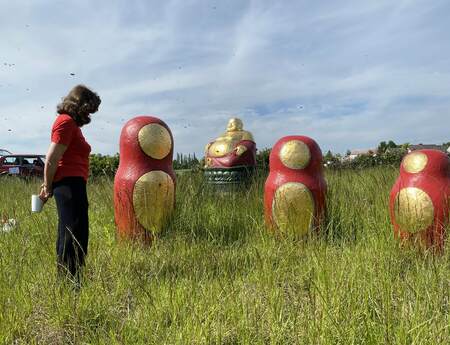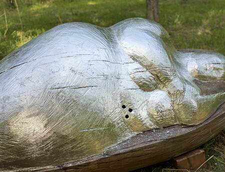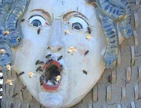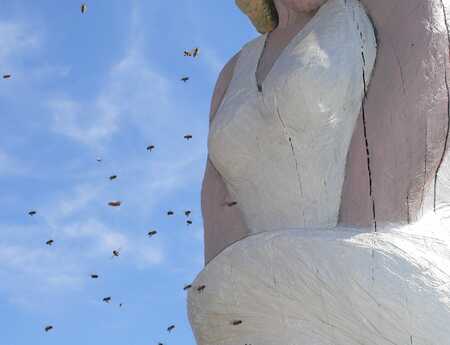Wie kam der Mensch darauf, sich Bienen in den Bauch zu setzen. Dieser Frage bin ich nun als Bildhauerin und Bienenbetreuerin seit 30 Jahren auf der Spur. Vom Honigschlecker bis zur Goldenen Banane, allesamt Bienenstöcke mit Geschichte. Denn diese gab es schon im 18. Jahrhundert. Und es geht hier um mehr als die Honiggewinnung. Auch um mehr als die Bienen zu beherbergen, es geht um die Beziehung Mensch und Biene, bzw. um Biene und Mensch. Skulpturen im öffentlichen Raum erzählen eine Geschichte. Als figürlicher Bienenstock, sprich Figurenbeute lassen sie auf den Zweiten Blick die Bienen zu Wort kommen. Ein Erlebnis der besonderen ART
