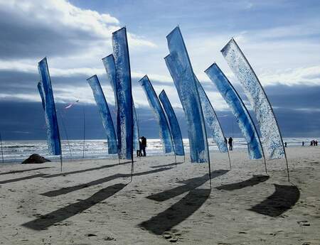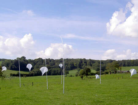 Luft das unsichtbare Element, vom Atem bis zum Orkan, Wind. Wind verleit meinen Arbeiten Lebendigkeit. Erst der Wind macht sie komplett. Die Objekte und Installationen sind nicht für einen bestimmten Ort oder für eine bestimmte Zeit gemacht. Das Reisen ist ein wesentliches Element und der Dialog mit den verschiedenen Orten und Menschen. Ein Wechsel von Landschaft und Himmel, von Wind und Licht, von Räumen und Menschen, von Klima und Sprachen. Jedes Mal neu und unwiederholbar. Drachen sind ultra temporäre Objekte, man kann sie leicht verpacken und transportieren. Geplant oder spontan fliegen lassen, einzeln oder als Gruppe. Es wirkt nicht allein die Form oder das Motiv, vielmehr nimmt man die gesamte Umgebung, Himmel und Landschaft neu wahr.