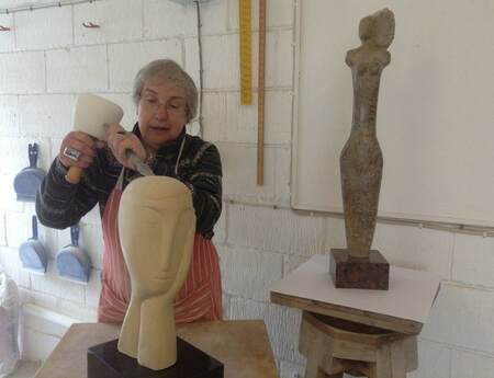 Linda uses a variety of stone to create her carvings. She uses the human form as reference concentrating on the strength as well as the vulnerability of the human body, seeing how the body expresses itself and the way each curve and fold relates to each other, her work is in private collections in the UK, America and across Europe. Linda has also been an art tutor for over 20 years working for various Adult Learning Centres and Oxford College of Further Education. She now runs weekly stone carving and mosaic classes in her studio, as well as 4 day stone carving workshops overlooking Wimbleball lake in Exmoor National Park.