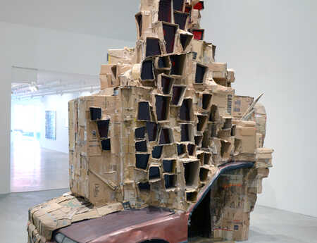 The larger installations often deal with the question how to related to the outside world and how one closes off from it. It is rather recent that Voerman let these installations function as a platform for debate, workshops and congragation where the themes of these activities collide with the content of the installations itself.