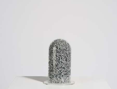 What I seek through the metal mesh is the expressiveness of vacuum transforming it into a means of expression. My research is based on the space-light relationship and its projected shadows that become changing compositional elements, on the "ethics and aesthetics" of diversity and on the essentialist search for formal and technical simplicity.