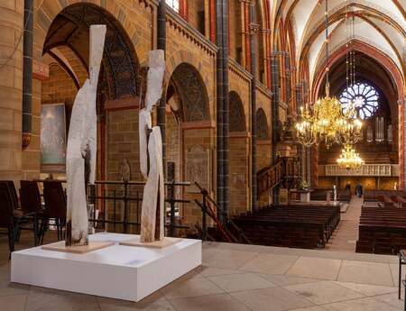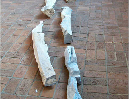 Die Skulpturen stehen fest im Raum, sind Stelen artige Raumzeichen, gestenhaft gebogen, gekrümmt, getürmt oder ausgelegt, voluminöse Kapseln oder einfach nur Bruchstücke, Artefakte aus einem größerem Zusammenhang. Gunther Gerlachs Arbeiten sind keinem eindeutigen Stil zu zuordnen, gerade weil sie sich modischen Trends widersetzen und mit einfachem Handwerkszeug auskommen. Auf der Suche nach Form und Formung wollen sie Nichts weiter als den Betrachter in eine eigene Welt ziehen.