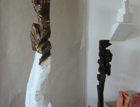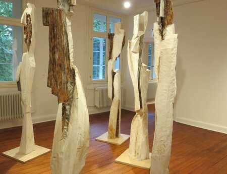 Gunther Gerlach ist Bildhauer, aber auch Zeichner. Als Bildhauer verwendet er mit Vorliebe Holz, als Zeichner den Grafitstift. Beide Ausdrucksmedien ergänzen sich dialogisch. In der Darstellung des Bildhauerischen scheint immer wieder in abstrahierter Weise die menschliche Figur durch. Bildhauen und Zeichnen scheinen in einem fortwährenden Prozess des Suchens zu verlaufen und immer dann rechtzeitig abzubrechen, wenn sich Formen als zu gekonnt, zu fertig, zu artifiziell erweisen. Diese prozesshafte künstlerische Haltung macht das sperrige seiner Arbeiten aus, die dem ästhetischen im wahren Sinne verpflichtet sind. Nicht das geschönte interessiert den Künstler, sondern das allseitig sinnlich erfahrbare