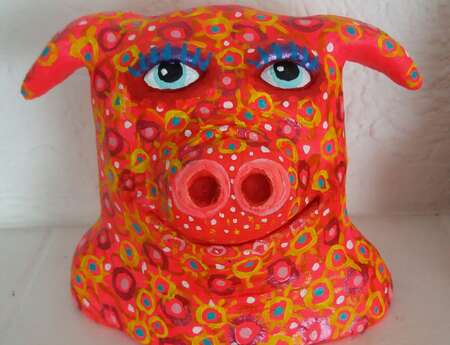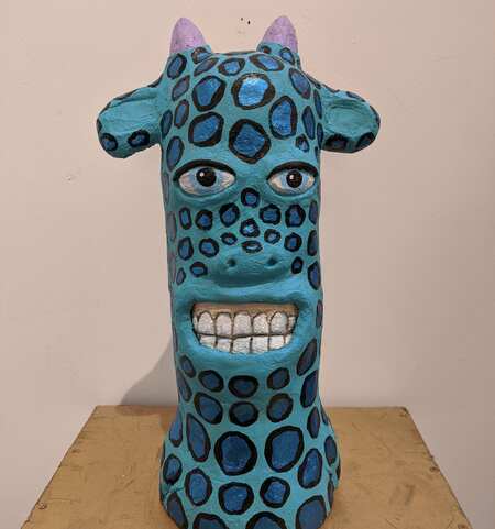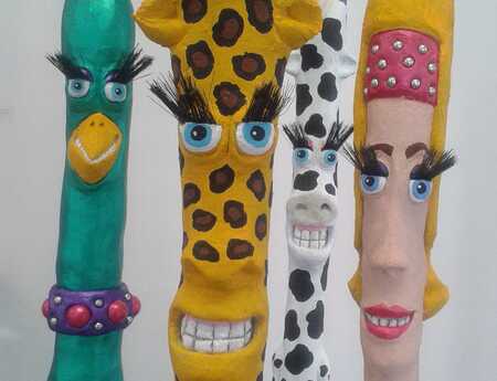 Sie kreiert freistehende Beton Figuren, meistens Tiere, aufrecht stehend mit menschlichen Zügen. Inspiriert von den Totempoles aus ihren Heimatland Kanada. Es sind glückliche Wesen mit einem starken Selbstbewusstsein und einem guten Herzen. Sie fordern Aufmerksamkeit und erinnern die Menschen an ihre Verantwortung für unsere Erde und ihre Mitbewohner.