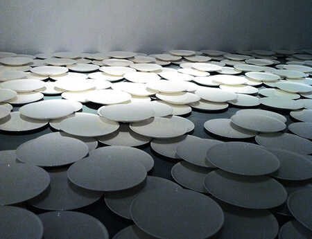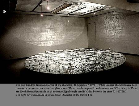 My art is space-specific. I’m often assembling my installations to fill several rooms, so that the subject matter can be sensed through the connotations of the combined materials, form, and thought. Some of the materials I use have a transient character, like water, breeze, light, grease, and pigment powders. But also stones, steel, glass and other reflecting materials are often parts of the installations. I prefer to create installations in which beauty combines with austerity, meaning and thought.