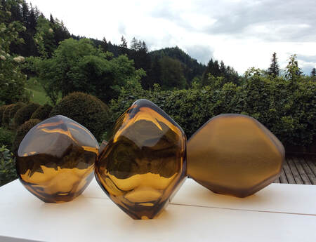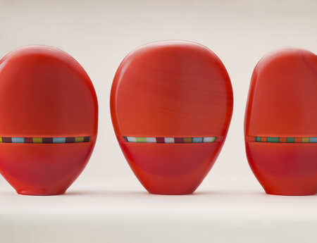 I like using glass. It allows me to combine subtle coloration with formed shapes. By removing successive layers at crucial points, I create openings which draw the attention of the eye and the mind to what is going on deep inside the object.