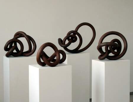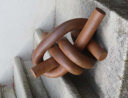 Vorwiegend arbeite ich mit Stahlrohren. Aufgeschnitten, verformt und verschweisst dienen sie als Ausgangsmaterial für Eisenplastiken wie die „Chromosomen“. Momentan arbeite ich an neuen Eisenplastiken - Loops aber auch verschlungene Knoten entstehen. Installationen aus Kunststoff sowie druckgrafische Arbeiten ergänzen mein künstlerisches Werk. For years the focus of my artistic work has been on genetic topics. Fascinated by the diverse forms and shapes of chromosomes, I welded sculptures for private and public spaces in various sizes. In addition to my other groups of steel sculptures like the Variations, I’m currently working on “Knots” - in steel a difficult task. My preferred material is steel. To realize my sculptures I cut steel tubes, shape and bend them, weld them and grind the welded joints. My artistic work also includes printmaking works and space- or site-specific works. Pendant quelques années, les thèmes liés à la génétique étaient au centre de mon travail artistique. Fascinée par les nombreuses formes de “chromosomes”, j’ai réalisé des sculptures en acier de formats différents. Durant les dernières années, j’ai développé d’autres thèmes : deux ou trois “tubes” s’entrecroisent, s’enroulent, s’enchevêtrent et rappellent l’accolade...les noeuds. Ma matière préférée est l’acier. Je travaille principalement avec des tubes. Je coupe, tords, plie, soude,et... des arrondis, des boucles se forment. En parallèle, je réalise des installations et des œuvres graphiques.