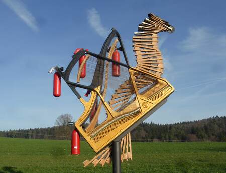 Meine Metallkunst sind Metall Skulpturen und Plastiken auch als Brunnen oder Windspiele, Metallbilder fuer die Raum- oder Fassadengestaltung, Metall Design oder architektonisches Funktionselement, Aktionskunst, sowie komplexe Gestaltungsanforderungen. So wird Kunst und Design von mir individuell entworfen und gefertigt, die das Umfeld des jeweiligen Standortes in sich aufnimmt. Ob mit der Skulptur bei der Kunst am Bau, in der Landschaft als Garten Skulptur oder Plastik im Garten, immer schenke ich den standortbezogenen Eigenheiten und der landschaftlichen oder architektonischen Stilistik, ob historisch oder modern, besondere Beachtung. So lege ich besonderen Wert auf die Individuelle des Ortes und des Auftraggebers. Dadurch bin ich in der Lage, so verschiedenartige kreative Arbeiten zu Entwerfen und Fertigen. Auch wenn mein Hauptgestalltungsmittel - die verschiedenen Ausdrucksformen der Metallgestaltung ist, werden Material-Collagen seit langem als kreative Herausforderung gern aufgegriffen. Recycling Kunst aus Reifen und ausrangietten Klavieren und anderen Materialien sind von privat sowie Firmen und Bildungseinrichtungen auch international gefragt. Die Aktions-KunstDurch die von mir erworbenen umfassenden handwerklichen, denkmalpflegerischen sowie kreativen Fertigkeiten, bin ich in der Lage verschiedenartigste Techniken anzuwenden und umfassende Gestaltungsfragen zu erledigen. Egal ob in Landkreis Ravensburg, Baden-Wuerttemberg oder Weltweit , mein kuenstlerischer Aktionsradius kennt keine Grenzen. Mit einer eigenen Galerie, Ausstellungsorganisation, Workshops und Performance wird das kuenstlerische Erscheinungsbild abgerundet. Film Links und Diashow