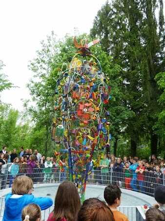 Skulptur auf dem Rhein-Delta-Skulpturenweg, Schülerzusammenarbeitsprojekt, Brunnen, Recycling Kunst, Fahrrad Skulptur, Kinetisches Kunstwerk
