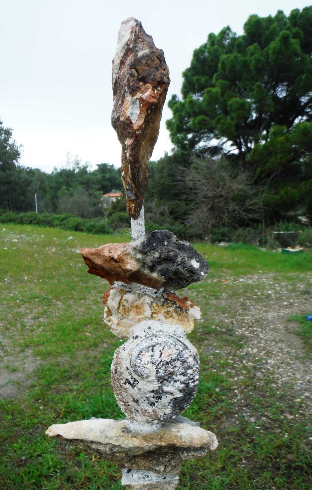 Stone sculpture, shell fossils, sea fossils. Art park-Rhodes Greece