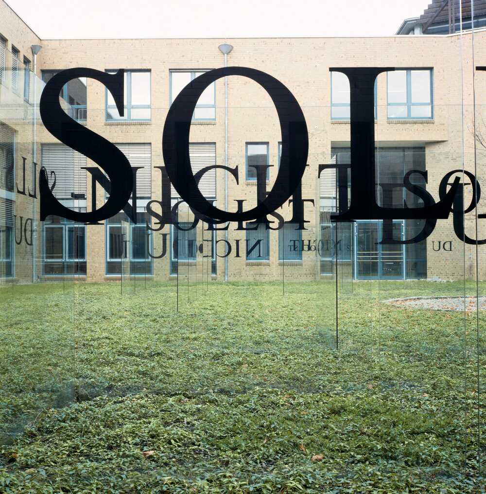 Glaslabyrinth, Du sollst-Du sollst nicht, Sicherheitsglas, Siebdruck, Innenhof Landgericht Göttingen