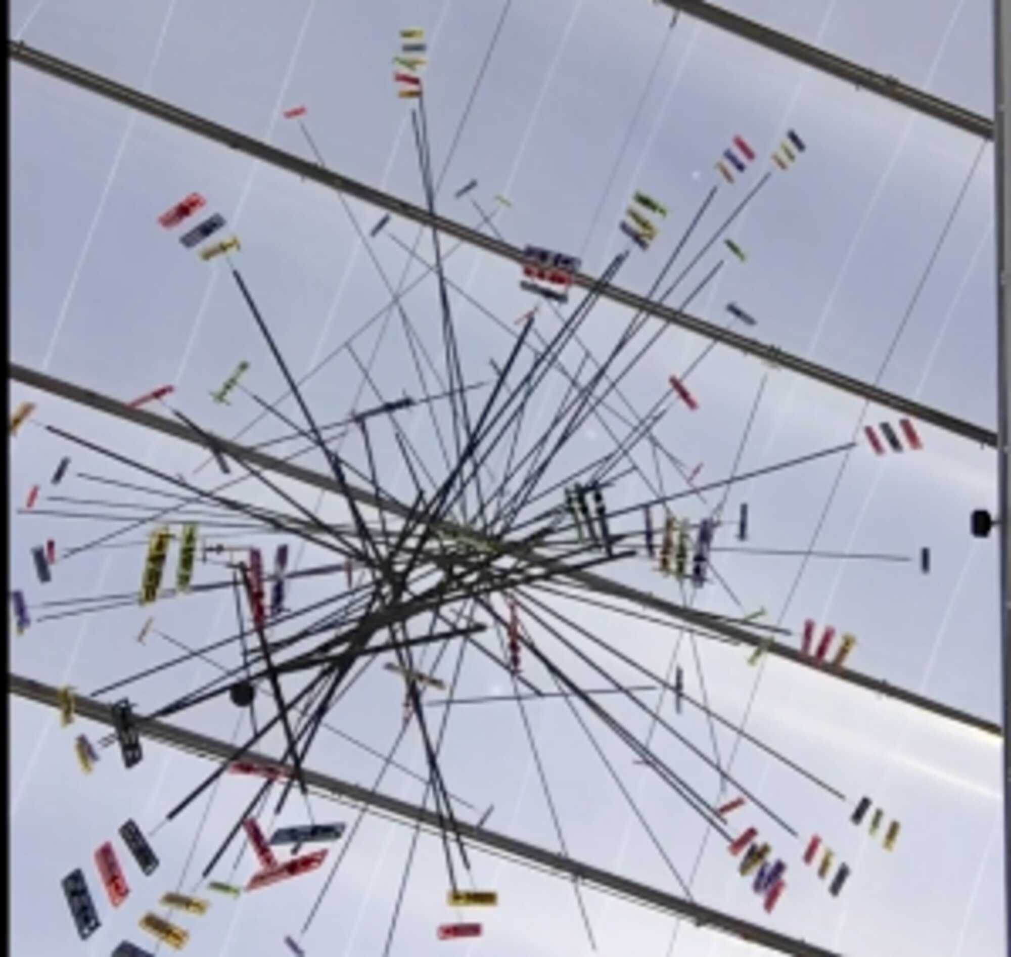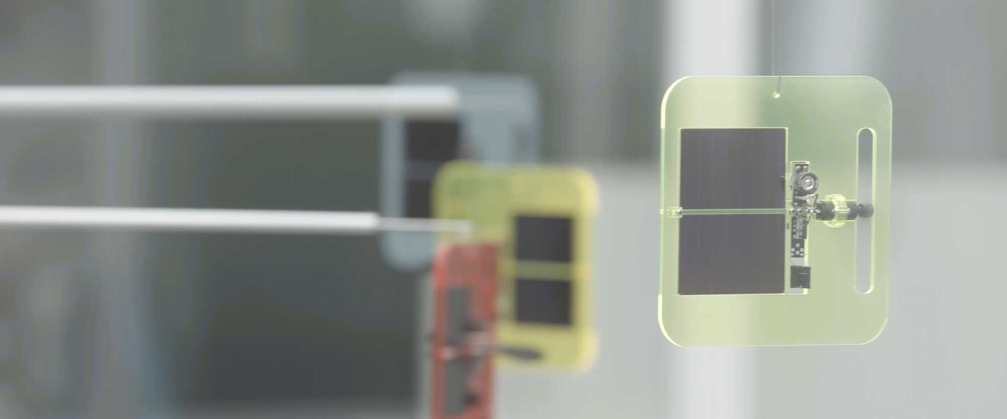 135 of these mini-solar sculptures generate electricity themselves and convert it into motion. They float unpredictably in the air in the new Alliander building. This kinetic mobile is 13 meters high and has a diameter of 9 meters. In the morning it slowly comes to life, during the day it is lively and when the sun sets it slowly comes to rest. It is like a musical instrument that is played by the sun.