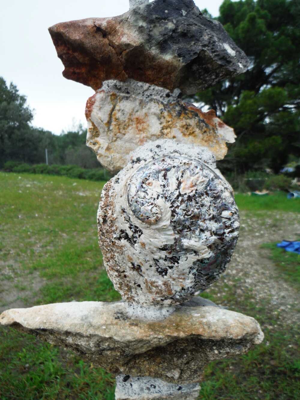 Stone sculpture (detail) stone and shell fossil. Art Park-Rhodes-Greece