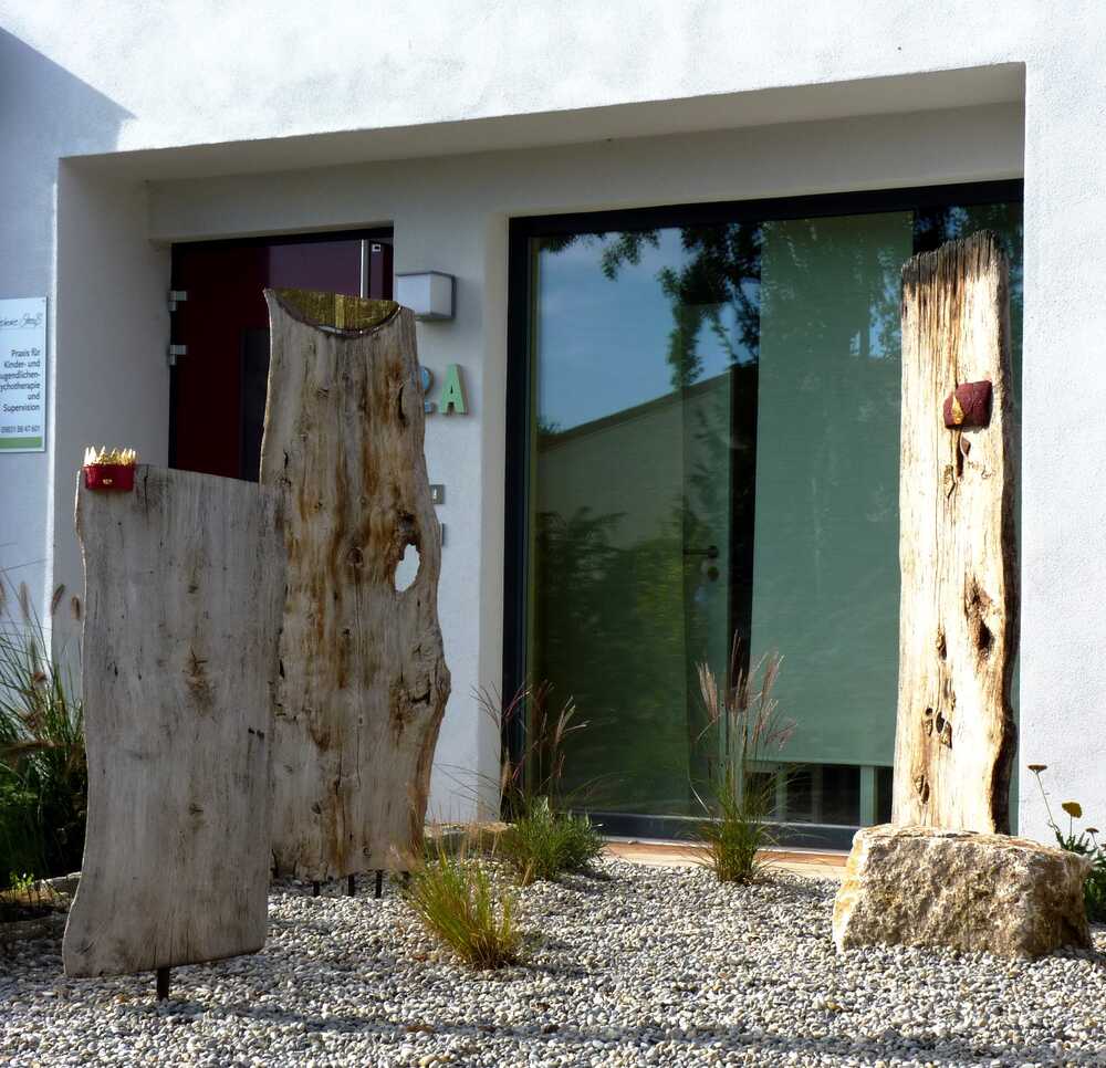 -- Vater - Mutter - Kind -- verwitterte Eichenbohlen, Epoxidharz, Blattgold, Kompositionsgold, Feuer; __ therapeuthische Praxis Gunzenhausen __