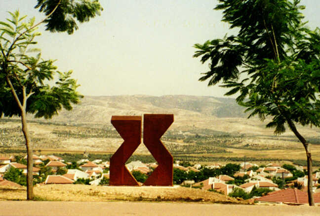 Serendipity, 7 feet high x 6 feet wide (each piece) rusty steel, Maccabim , Israel
