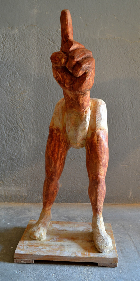 Little Great Dictator, carved wood and paint 66x30x27cmts