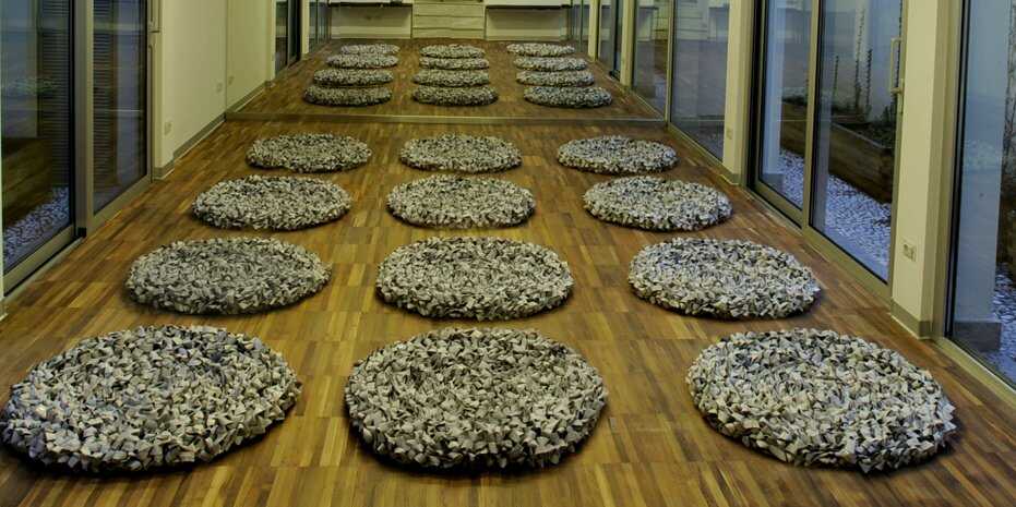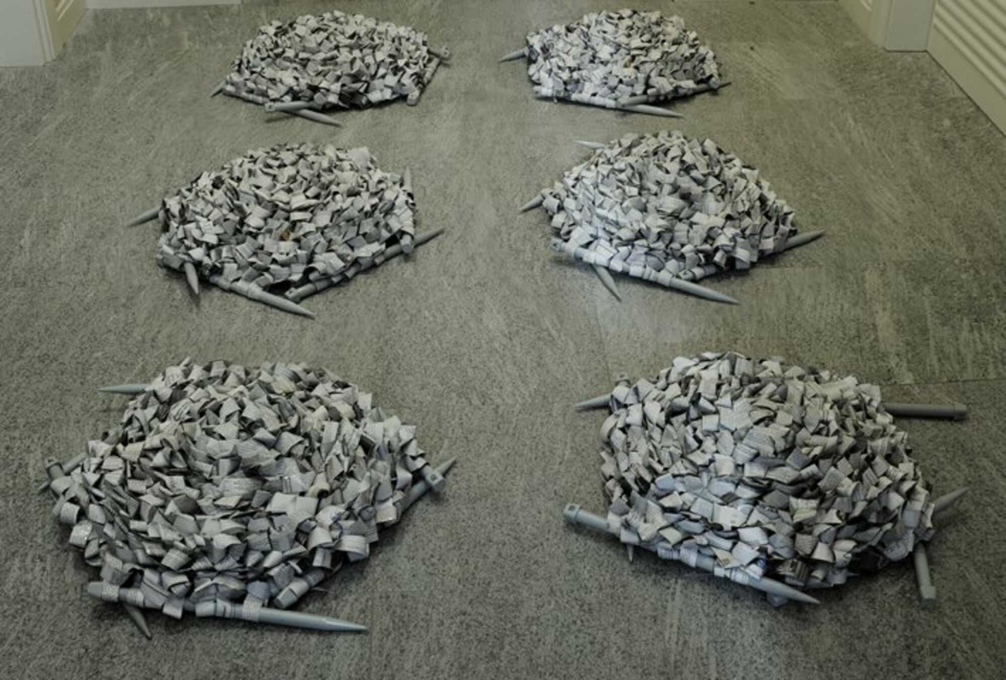In the series "the Key Question is Never about Truth" , I have deconstructed the conventional use and meaning of newspapers as objects of information by cutting them into strips. While I was cutting the newspapers, I felt as if I was peeling back the outer, superficial layer of their messages to reveal the secret spaces beneath. By knitting the newspaper’s strips together, I have created a new information object, which has a different structure, context and message. In this way the words, the overload of inconsistent information in the newspapers are reassembled to obtain a still existence: a tangible presence that arises silence.